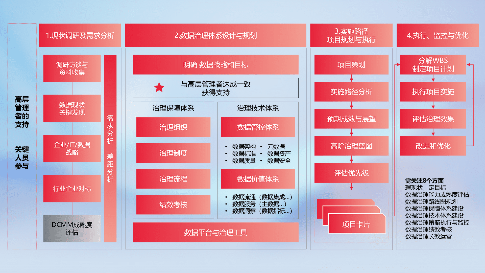 制定并执行统一的数据标准,,,,规范数据定义和格式,,消除冗余和不一致性,,实现跨部门和跨系统的数据一致性,,,为企业提供标准化的数据基础。。。。